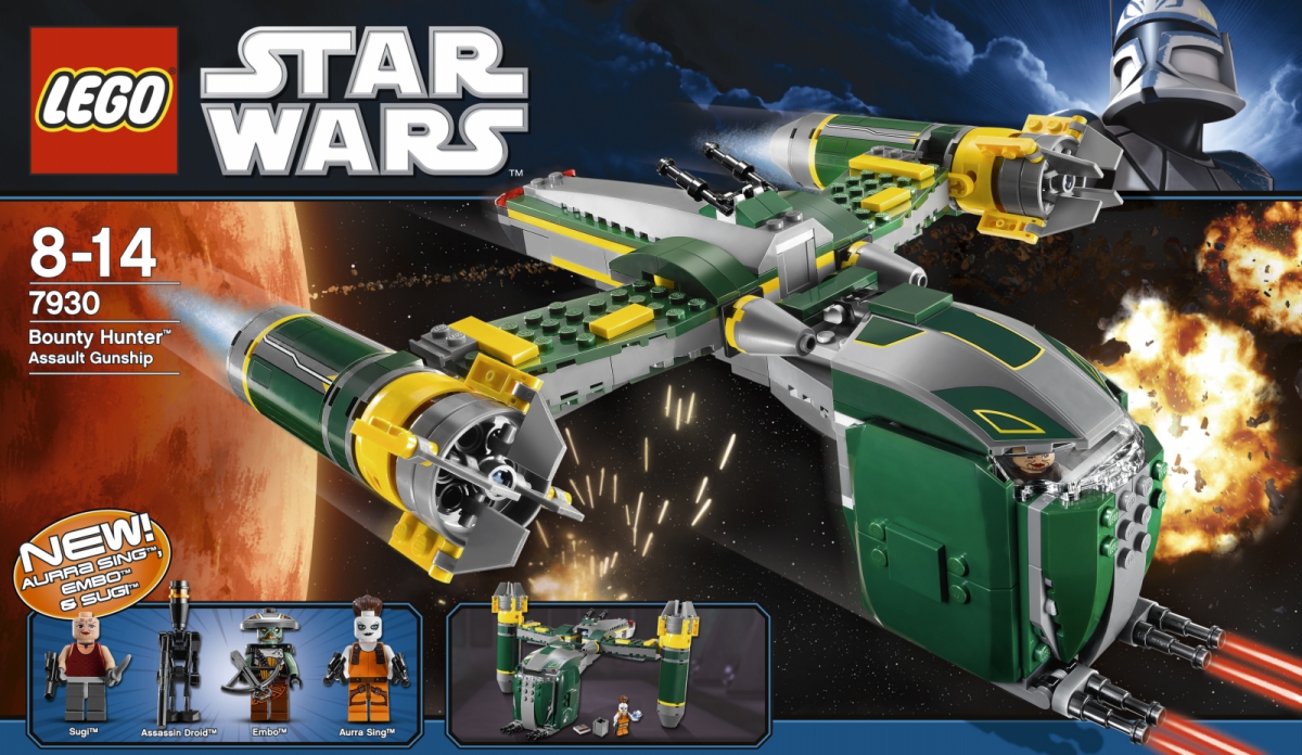 Klonkrigens utgång är oviss och prisjägarna försöker fånga jediriddarna! Med roterande motorer för flyg- och landningslägen, öppningsbar cockpit, laserkanoner och en fångcell för jediriddare är prisjägarens stridsrymdskepp redo för uppdraget. Innehåller de helt nya minifigurerna Sugi, Aurra Sing, Embo samt prisjägaren och mördardroiden IG-86.