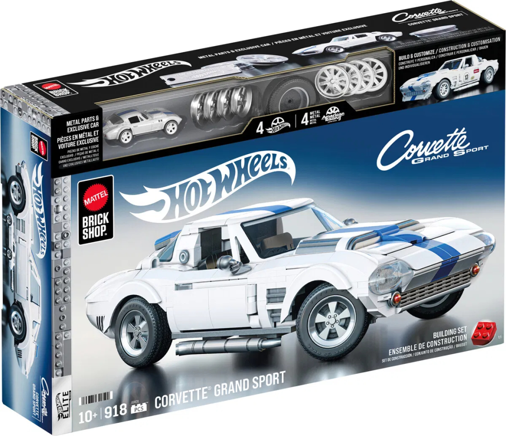 Färre än 130 modeller producerades någonsin... men nu är det din tur att bygga en. Upptäck den fullt byggbara Corvette Grand Sport i skala 1:16 från Mattel Brick Shop. Detta detaljerade och autentiska set innehåller extra delar för anpassning, hjulkapslar i metall, ett ark med dekaler, en signaturplatta samt en exklusiv metallbil att samla och visa upp. Samla alla bilar i Elite-serien och bygg ditt eget garage.